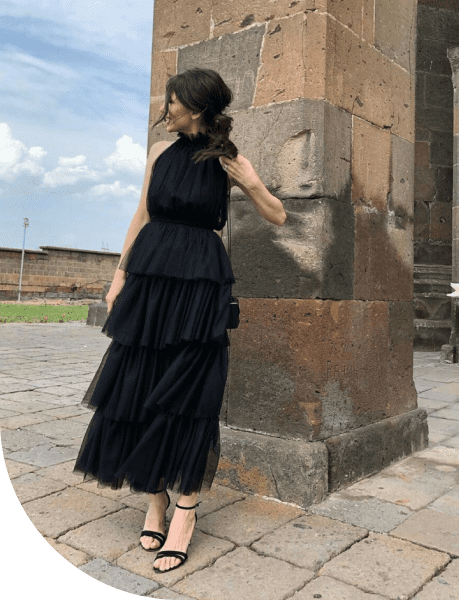 Девушки: коктейльные платья или брючные костюмы в представленных оттенках